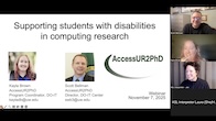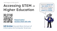 May 03, 2025Stacy Branham, UC-Irvine and Nicholas Guidice, University of MaineSupported by: AccessComputingThe 2025 UC Irvine "Accessing STEM and Higher Education" event focused on making higher education more accessible to students with disabilities, particularly those who are blind or have low vision. Professor Stacy Branham shared her journey in accessible technology and highlighted the lack of digital accessibility courses in computer science programs. Dr. Nicholas Giudice emphasized the importance of time management, self-advocacy, and involvement in the design of accessible technology for blind students in STEM. Panelists discussed their preferred methods for representing math equations, shared experiences with accommodations and emphasized self-advocacy, independence, and the value of community support.
