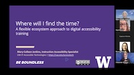 Jan 27, 2026Mary-Colleen Jenkins, UW Instruction Accessibility Specialist, and 2025 Teach Access FellowSupported by: AccessComputingWhen it comes to digital accessibility training, instructors often ask, “Where will I find time to learn these new skills?” followed by, “Where do I start?” In addition to existing technical support, the answer is to create varied, facilitated learning opportunities to fit busy schedules. Modular training options, from mini-lessons to interactive workshops with built-in working time, make accessibility practices "stick" and show even the busiest instructors that this work is doable. In this session, Mary-Colleen will explains the Ecosystem Approach to digital accessibility training and share a flexible training model that helps time-pressed folks answer the big question "Where will I find the time?"
