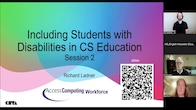 Aug 08, 2022Richard Ladner (UW)Supported by: AccessCSforAllAbout 8.7 million PreK-12 students in the US have a disability and are served under the Individuals with Disabilities Act or under Section 504 of the Rehabilitation Act. These students have a number of barriers that prevent them from participating fully in CS education. In this webinar we discuss these barriers and how they can be removed to make CS education more accessible and welcoming to these students. Resources including accessible programming environments universal design for learning pedagogies will be discussed. The strategies presented in the webinar can be used in both pre-service and in-service CS education programs to supplement other diversity, equity, and inclusion parts of these programs.